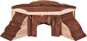 Het Trixie Natural Living Hoekhuis Thordis van 21 x 19 x 7 cm is een schuilplaats voor kleine knaagdieren als muizen en hamsters, van schorshout. Geheel natuurlijk en naast een veilige slaapplek ook een leuk speelhuis voor jouw dier! Dit hoekhuisje bestaat uit een slaapplek in het midden met aan weerszijden een trappetje naar het dak. Het dak is plat en kan dus ook als terras of uitkijkplaats gebruikt worden. Omdat het huisje natuurlijk is en gemaakt uit hout zonder hars en zonder giftige lijm, is het geheel veilig voor jouw dier!
