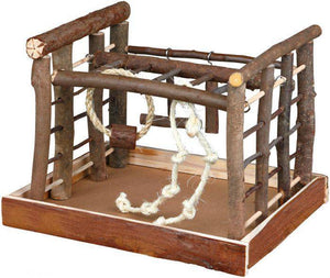 De Trixie Natural Living Vogel Speelplaats van 35 x 25 x 29 cm is een vogelspeeltuin van schorshout, met trappen, bruggen, touwen, schommels en bodemplaat.