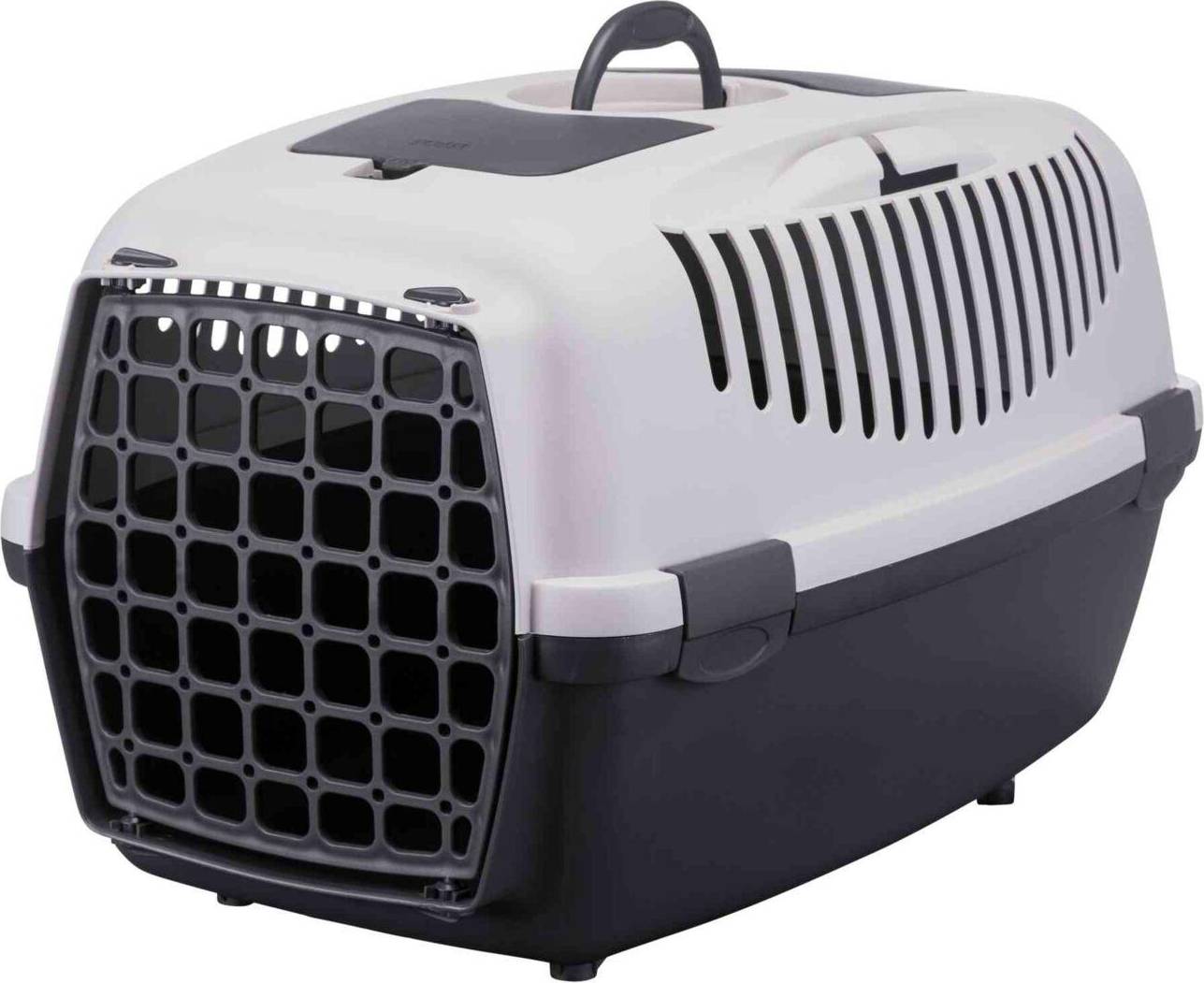 De Trixie Reismand Capri Donkergrijs/Pastel blauw 40X38X61 cm is een vervoersbox voor honden en andere kleine dieren tot 8 kg. De reismand is gemaakt van stevig kunststof en is voorzien van een praktisch handvat. Dankzij de ventilatiegaten is er optimale luchtcirculatie, zodat jouw huisdier altijd frisse lucht heeft. Daarnaast is de reismand uitgerust met een handig opbergvak en een klep waarmee je jouw hond kunt aaien zonder de mand te openen.