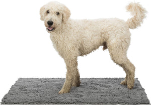 De Trixie Schoonloopmat Waterdicht Grijs 100 x 70 cm reinigt de poten van de hond na het uitlaten, door de extra lange microvezels en uitstekende absorptie die vuil en vocht opnemen.