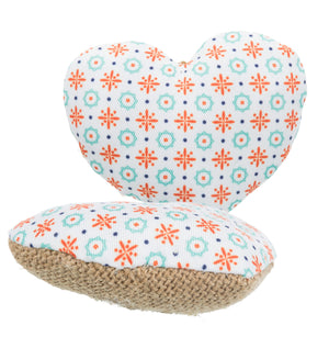Het Trixie Speelhart Stof / Jute van 8 cm is leuk kattenspeelgoed met ritselfolie en kattenkruid. Catnip heeft een grote aantrekkingskracht op katten, en daardoor zal dit speeltje al gauw de favoriet van jouw kat worden! Het hart is uitgevoerd in verschillende structuren stof, namelijk polyester en jute, en gevoerd met ritselfolie: daardoor is het nog interessanter. Heerlijk om lekker mee te spelen en te knuffelen. Het hart ziet er door de zachte kleuren en het leuke motief ook nog eens leuk uit!