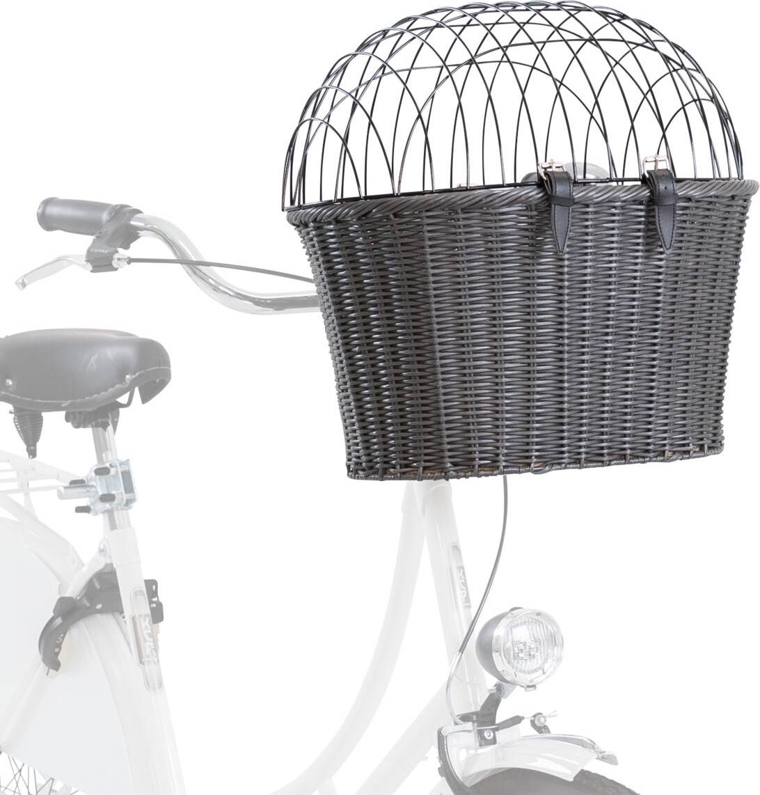 De Trixie Stuur Fietsmand Met Draadkap Antraciet van 44X34X41 cm is ideaal om jouw hond of kat mee voorop de fiets mee te nemen met goed zicht op het dier.