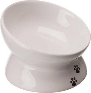 De Trixie Voerbak Kat Wit 150 ml 13 cm is een ergonomische, keramische voerbak of waterbak voor de kat. Deze bak staat verhoog, op een soort voetstuk, waardoor de kat minder ver door de poten hoeft te zakken om te eten. Dit komt de gewrichten en spijsvertering ten goede. De bak is gemaakt van keramiek en daardoor niet alleen makkelijk af te nemen, maar ook te gebruiken voor water of natvoer. De voerbak is wit met een leuke opdruk van zwarte pootafdrukjes.