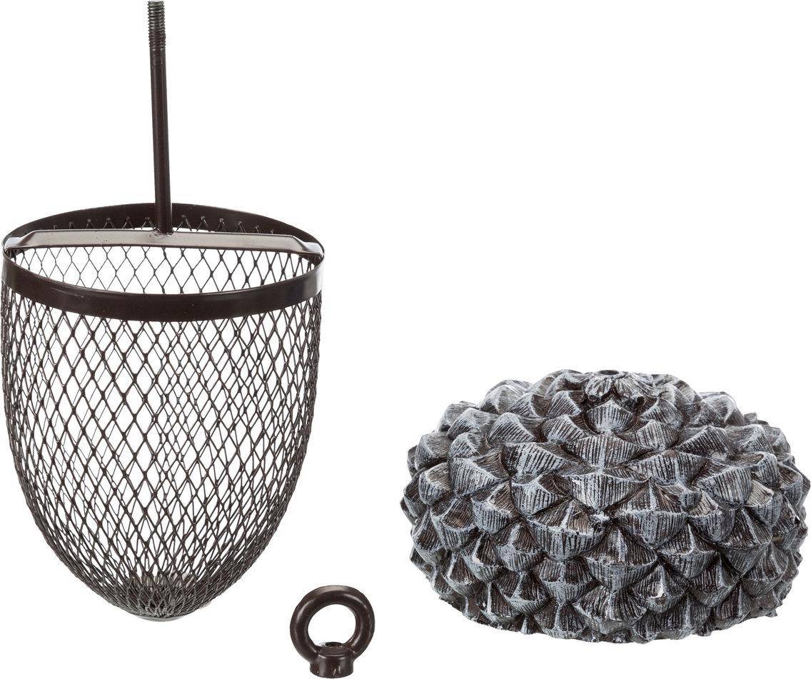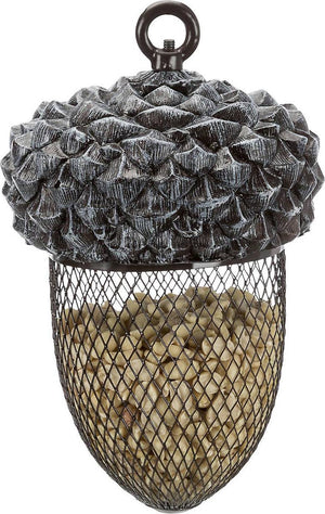 De Trixie Voersilo Eikel van 14 x 14 x 22 cm is een leuke voersilo voor buiten in de vorm van een eikel met deksel van polyesterhars. Deze leuke voersilo past helemaal in jouw tuin en geeft je de gelegenheid noten en grof strooivoer aan te bieden aan buitenvogels. De silo is gemaakt van metaal met een afneembaar deksel van polyesterhars en is van boven te vullen. Door de ring aan de bovenzijde kun je de silo makkelijk ophangen.