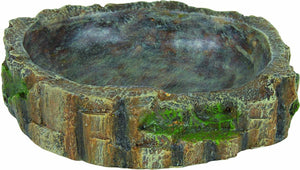 De Trixie Water- / Voederschaal Reptiel 13 x 11 x 3,5 cm is een decoratieve waterschaal of voerbak voor het terrarium met reptielen, van veilig polyesterhars en met een natuurlijke uitstraling. Deze leuke voerschaal maakt de look van jouw regenwoudterrarium helemaal af! Deze voer- of waterschaal is uitgevoerd in een natuurlijke vorm met een structuur van een boom met mos. De schaal is gemaakt van polyesterhars, een materiaal dat geschikt is voor het gebruik met levensmiddelen, en dus veilig voor jouw dier. Door de gladde afwerking van de binnenkant is deze gemakkelijk schoon te maken.
