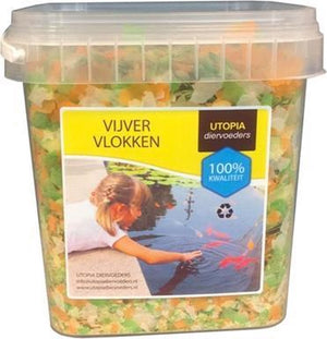 De Vijvervlokken van Utopia zijn gekleurde, drijvende vlokken in een handig emmertje. Dit visvoer is geschikt voor de meeste vijvervissen en licht verteerbaar. Voor gezonde, goed groeiende vissen en een goede waterkwaliteit. Dit visvoer is volledig diervoeding.