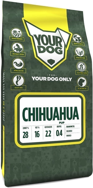 Om je te helpen bij het maken van de juiste keuze tussen onze varianten Chihuahua hondenvoer kun je gebruik maken van de volgende richtlijnen. Is jouw Chihuahua jonger dan 11 maanden, kies dan voor de Puppy variant. Voor een Chihuahua ouder dan 7 jaar adviseren we de Yourdog Chihuahua senior. Is jouw hond ouder dan 11 maanden en jonger dan 7 jaar, dan kun je de Adult variant kiezen.