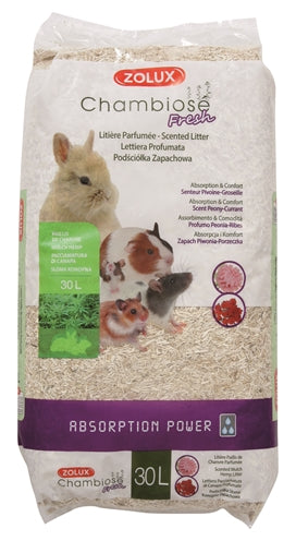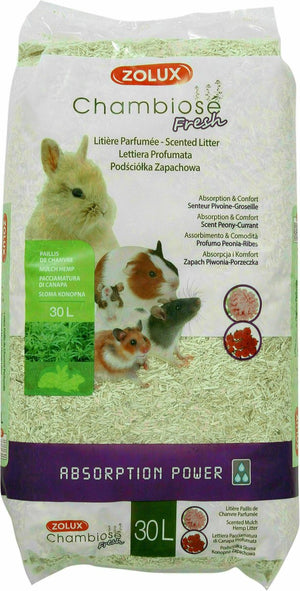 Deze Zolux Hennepvezel Fresh Pioenroos en Aalbes Geur van 30 liter is een revolutie op het gebied van bodembedekking! Hennepvezel is een 100% natuurlijk en biologisch afbreekbaar bodemmateriaal, dat naast comfortabel ook ontzettend absorberend is. Zo is het strooisel niet alleen heerlijk zacht aan de pootjes, maar voorkomt het ook natte plekken en nare geurtjes. Door deze lekkere geur die aan dit strooisel is toegevoegd, kun je helemaal genieten van een fris ruikende kooi!