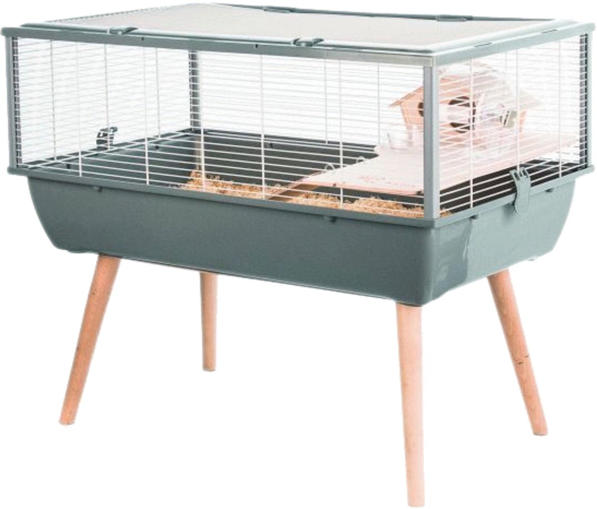 De Zolux Knaagdierkooi Neo Nigha Grijs van 78X48X64,5 cm is een ruime kooi voor kleine knaagdieren met een plateau, trap, huisje, loopwiel en voerbakje.