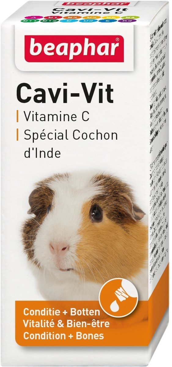 Cavi-Vit is speciaal samengesteld voor cavia's. Het bevat een hoog gehalte aan vitamine C omdat cavia's zelf niet in staat zijn vitamine C aan te maken. Vitamine C is nodig voor de aanmaak van bindweefsel. Zonder vitamine C kan de cavia problemen krijgen met tanden, tandvlees, botten, gewrichten, spieren, etc. Tevens zorgt vitamine C voor een gezonde vacht en huid en het houdt daarnaast de weerstand op peil, waardoor de kans op schurft afneemt.