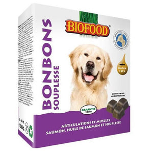 BF Petfood Schapenvet Maxi Bonbons Soeplesse van 40 stuks zijn lekkere zalmolie bonbons van schapenvet voor de grote hond. De smakelijke bonbons zijn gemaakt voor alle honden vanaf tien weken en bevatten een perfecte combinatie van gezonde ingrediënten. Zalm, zalmolie en schapenvet zorgen voor een gezonde huid, vacht en hart en chondroïtine, glucosamine en natuurkruiden helpen de gewrichten te ondersteunen. Het vet is smaakmaker en helpt bij de transport van vitamine A, D, E en K.