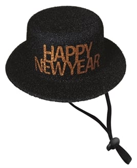 Met deze hondenhoed maakt jouw hond de blits met de jaarwisseling! De leuke hoed heeft een sjieke vorm en is uitgevoerd met een glitterende print met de tekst 'Happy New Year'. Ontzettend leuk voor oud en nieuw! De hoed heeft een schuifkoordje aan de onderzijde, zodat jij hem op maat kunt maken voor jouw hond.