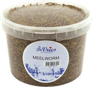 De Vries Black Soldier Fly Meelworm 120 gr 870 ml is een handige emmer met gedroogde meelwormen, een smakelijke snack voor vogels, hamsters en muizen, rijk aan dierlijke eiwitten. De ideale aanvulling op elk dieet! Deze smakelijke snack bestaat uit 100% gedroogde black soldier meelwormen. De meelwormen zijn knapperig gedroogd en zijn de ideale aanvulling met dierlijke eiwitten voor bijvoorbeeld kippen, tuinvogels, hamsters en muizen. In handig hersluitbaar emmertje.