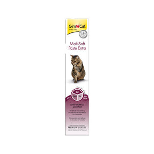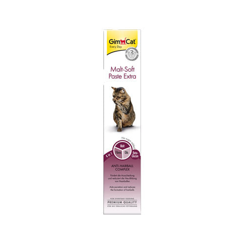 De Gimcat Malt-Soft Haarbalpasta Extra 100 gr bevordert de natuurlijke uitzetting van ingeslikte haren. Gimcat Malt-Soft bevat van nature zuiver, aromatische mout, plantaardige olie, vezels en lactose-derivaat met een groot deel van de TGOS (Trans-galactooligosaccharide). Het extra hoge vezelgehalte stimuleert het transport van voedsel en de natuurlijke uitzetting van ingeslikte haren en onverteerbare elementen. Dit helpt bij de problemen, zoals de vorming van haarballen en braken, op te lossen.