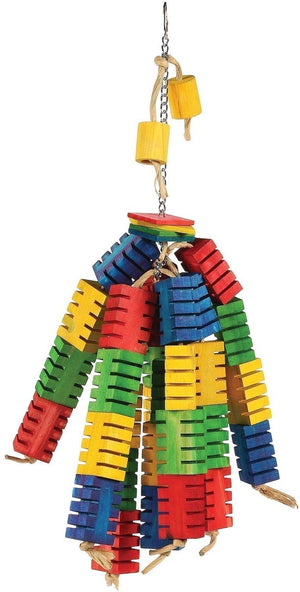 Hang deze mobile van gekleurde houten blokjes in de kooi van jouw vogel en voorkom zo verveling bij jouw gevederde vriend. De vrolijke kleuren van de blokjes vrolijken elke vogel en kooi op!