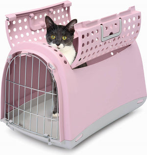 Imac Reismand Linus Cabrio Roze 50X32X34,5 cm is een moderne transportbox voor de hond of kat van sterk plastic, met veel ventilatie en ijzeren traliedeur.