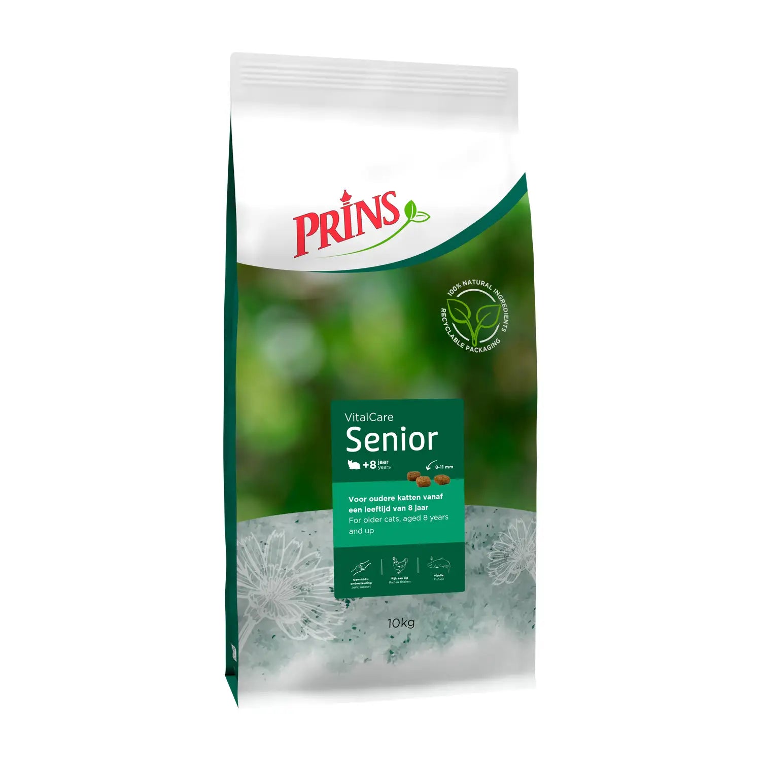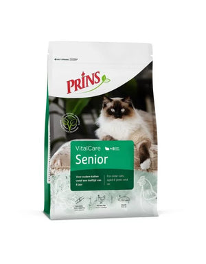 Prins Cat Vital Care Senior 10 kgDe Prins Cat Vital Care Senior 10 kg kattenvoeding is volledig kattenvoer van Prins voor oudere katten vanaf 7 jaar oud met aangepaste hoeveelheid energie. VitalCare Senior is een hoogwaardige voeding en bevat een aangepaste hoeveelheid energie en mineralengehalte speciaal voor de ouder wordende kat. Naarmate de kat ouder wordt, is de kat minder actief en veranderd zijn voedingsbehoefte. Het optimale eiwitgehalte houdt de spiermassa van jouw kat in stand terwijl een verlaagd vetgehalte de kat op gewicht houdt. Tijdens het verouderingsproces gaan de organen minder goed werken en verdienen dus ook extra aandacht. Ingrediënten van de beste kwaliteit zijn zo samengesteld dat ze de organen ontlasten en de weerstand versterken. Urine verzurende stoffen helpen blaasgruis te voorkomen. VitalCare Senior is speciaal geschikt voor oudere katten vanaf een leeftijd vanaf 7 jaar. Meng gedurende minimaal 7 dagen steeds meer nieuwe voeding door de oude tot je geheel bent overgestapt.