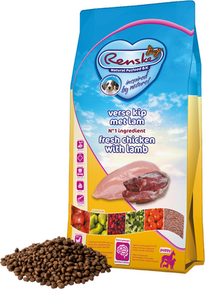 Renske Super Premium Puppy - Kip / Lam is volledige diervoeding voor de hond. Het is een licht verteerbare voeding voor puppy's van alle rassen.Goed voor het Leren en het Geheugen