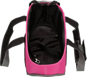 Trixie Hondentas Ale Roze / Grijs Tot 5 kg van 30 x 16 x 20 cm is een pefecte tas voor het meenemen van kleine hondjes! De mooie, vormvaste tas heeft een aantrekkelijk uiterlijk van polyester en pvc. Hij is aan de bovenkant te openen en heeft een speciale inkeping waar het kopje van de hond naar buiten kan kijken. De geïntegreerde korthouder voorkomt dat het dier eruit springt en de vakjes bieden je de mogelijkheid extra spulletjes mee te nemen. Een tas in een superleuk design die comfortabel is voor baas en hondjes tot 5 kg!
