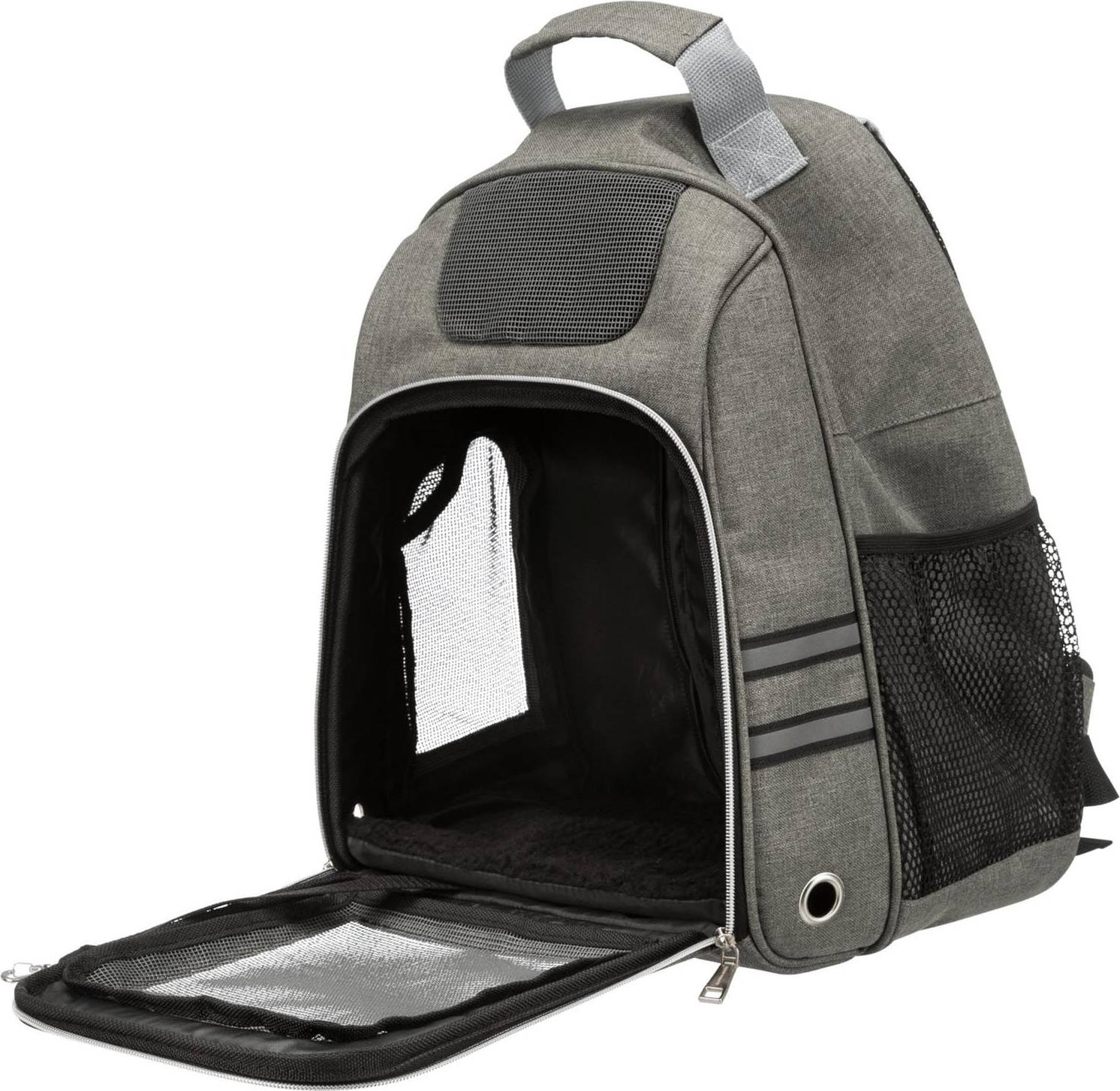 De Trixie Hondentas Rugtas Dan Blauw tot 34X44X26 cm is een rugzak voor de hond, vormvast, met gevoerde bodemplaat en gaas-inzetstuk. Een mooie tas die eruit ziet als normale rugzak, maar gemaakt is om jouw hond overal heen mee op pad te nemen! De stoere tas is stevig en vormvast, zodat hij zowel open als dicht zijn vorm behoudt en jouw dier voldoende ruimte heeft. De tas is aan de voorkant te openen voor goede bereikbaarheid en daar voorzien van een gaas-inzetstuk voor voldoende ventilatie en zicht. Voor gemakkelijk vervoer heeft de tas een handvat en de traploos verstelbare tailleriem zorgt voor veel draagcomfort. De gevoerde bodemplaat met schapenvacht-look maakt reizen in deze tas prettig voor jouw dier en in het gaas-opbergvak berg je alle spullen van jouw hond op. Een mooi, prettige tas voor dier en baas.