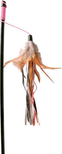 Kattenhengel met leren slierten en veren aan het eind. Trek de aandacht van jouw kat door het touw voor zijn neus heen en weer te bewegen en te schudden. Maak onverwachte bewegingen waardoor de kat nog meer zijn aandacht vestigt op de leren slierten en veren. Jouw kat zal uren speelplezier hebben met de hengel, maar nog belangrijker: speelplezier met jou!
