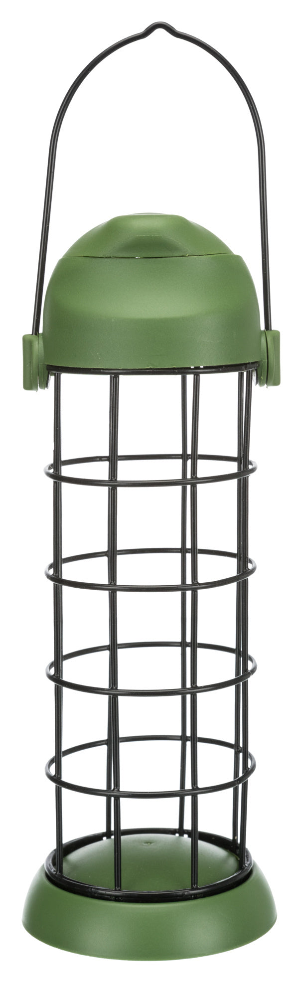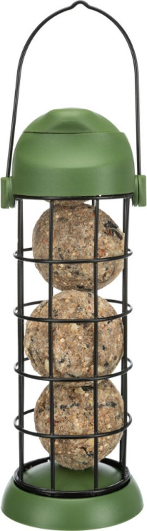 De Trixie Mezenbolhouder Groen 8 x 8 x 22 cm is een leuke houder voor mezenbollen en vetbolletjes voor tuinvogels, gemaakt van kunststof en metaal. Een leuke en handige manier om vogels in jouw tuin mezenbollen en ander aanvullend voer aan te bieden. Deze houder is gemaakt van metaal en kunststof voor een goede bestendigheid tegen het weer en is voorzien van een opklapbaar deksel en een afneembare bodem. Hierdoor is de houder eenvoudig te vullen en te reinigen. Door het stevige, kunststof hengsel aan de bovenkant is de houder eenvoudig op te hangen en vind je er altijd wel een plekje voor op jouw balkon of in jouw tuin.