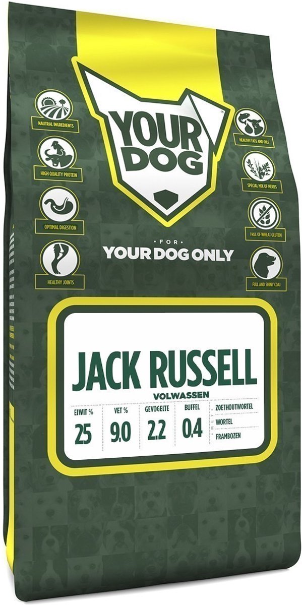 Yourdog Jack russell zorgt voor de holistische gezondheid en het welzijn van jouw hond. Alle Yourdog varianten bevatten smaakvolle buffel en kip. Wij combineren dit met zorgvuldig geselecteerde groenten, fruit en kruiden om zo te komen tot de perfecte voeding voor jouw Jack russell.